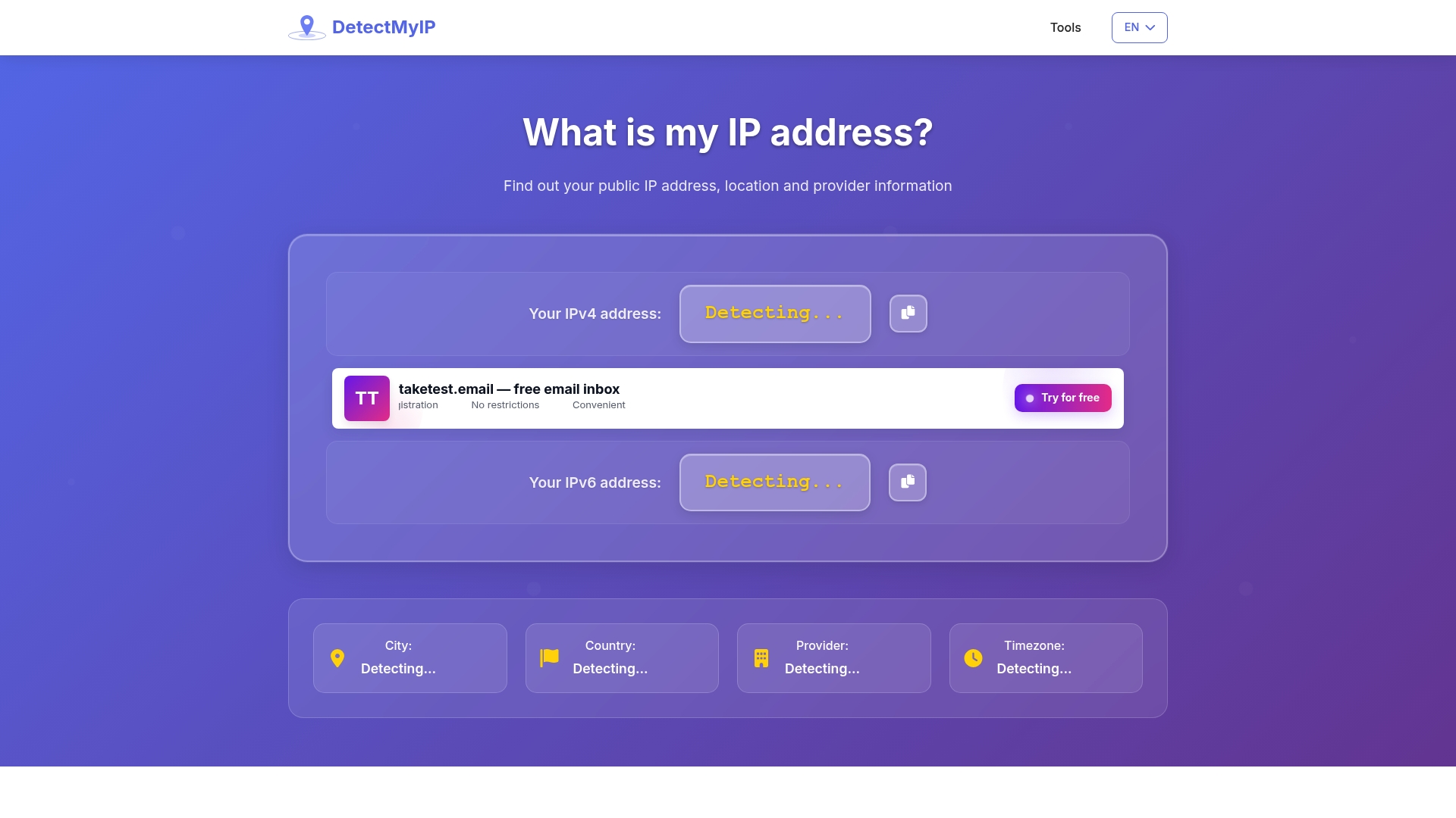 DetectMyIP is a free, web based service that quickly reveals your public IP address and gives detailed connection data. It is straightforward for testing VPNs and proxies and works as a reliable first step in network diagnostics.