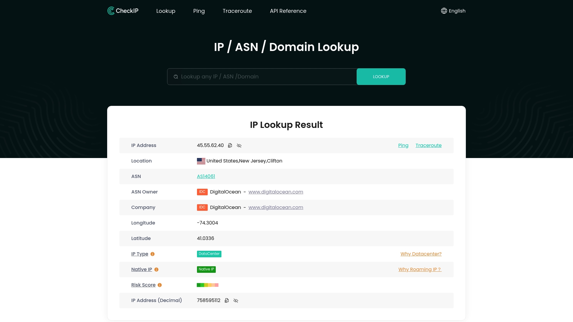 checkip.com centres on IP, ASN, and Domain Lookup alongside practical network utilities such as Ping and Traceroute for connectivity checks. The site also offers an API Reference so you can integrate lookups into scripts or monitoring platforms for automated analysis.
